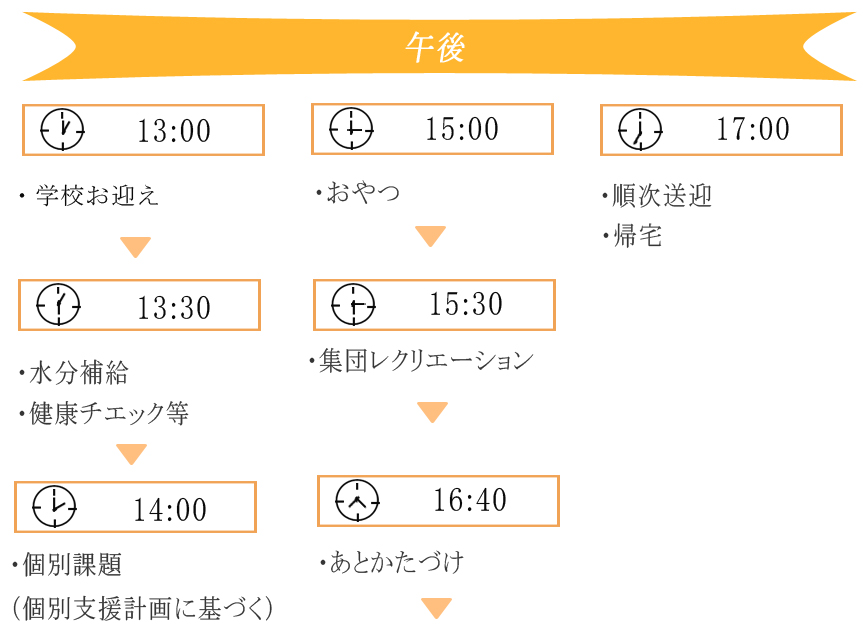 「バンビーニともに」の1日例(13:00下校の場合)